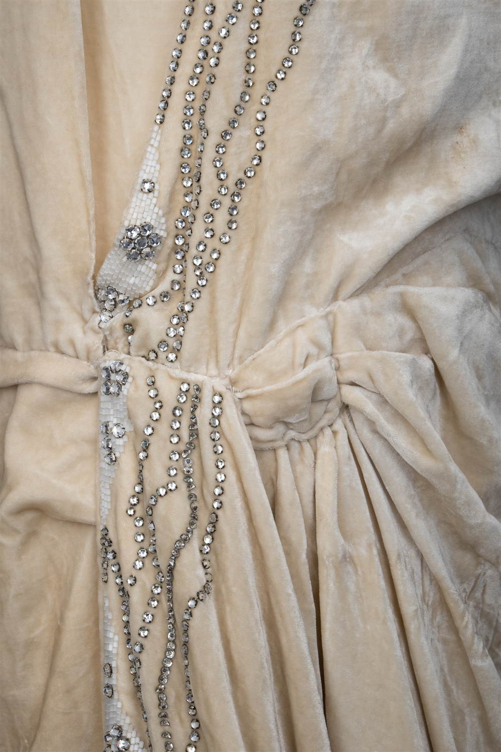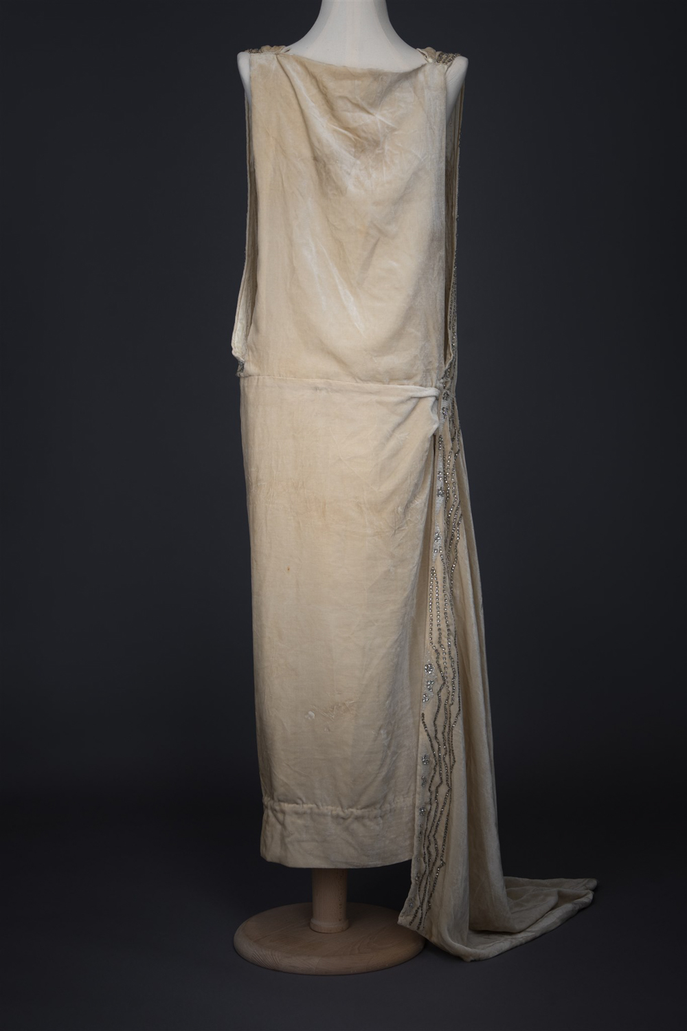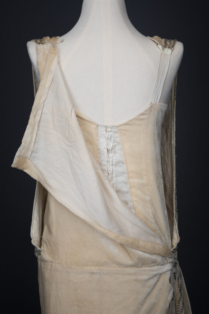 Ivory Velvet Beaded Evening Gown By House Of Worth, c, 1920, France. Photography by Tigz Rice. The Underpinnings Museum